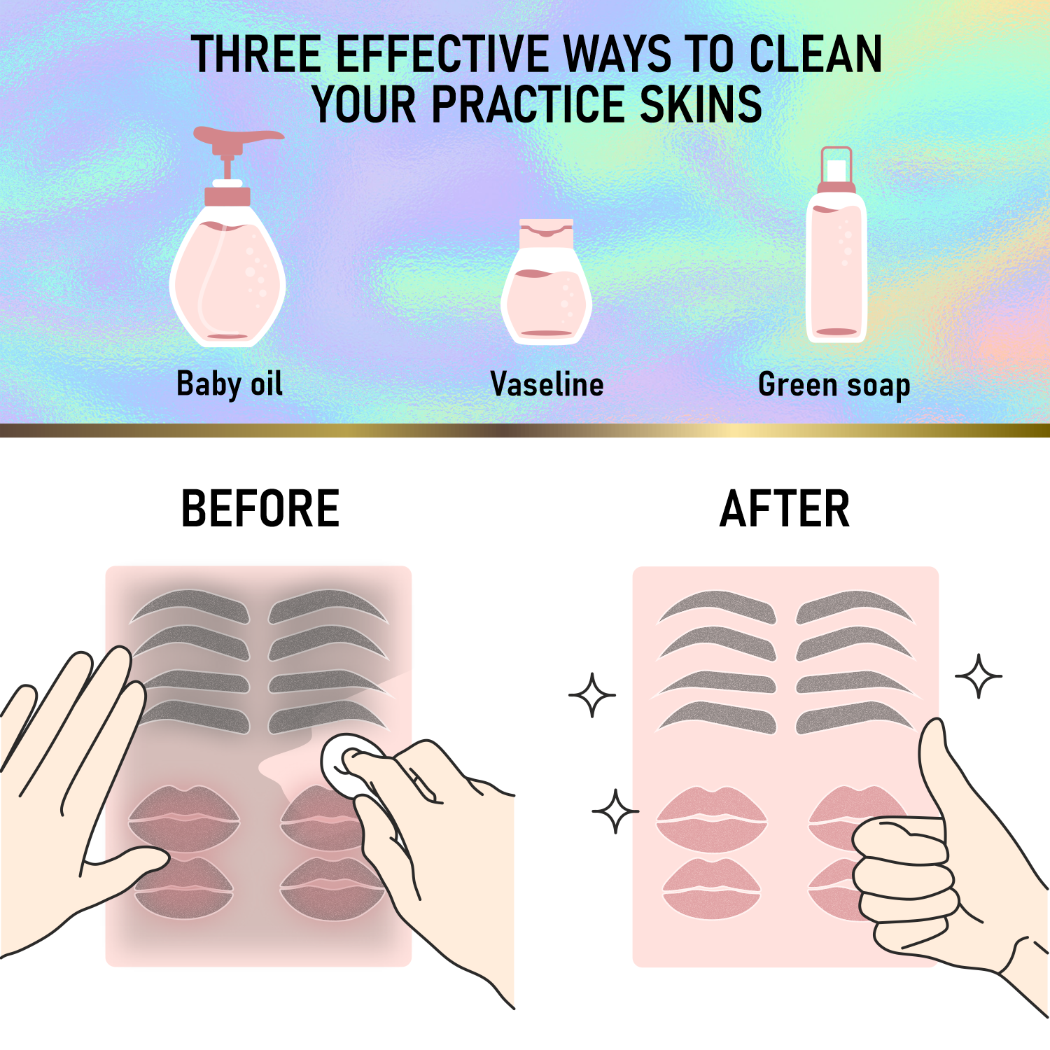 💕 DOUBLE SIDED! Our latex skin is thick enough for double sided usage. Master your skills with most popular microblading and nano strokes pattern.