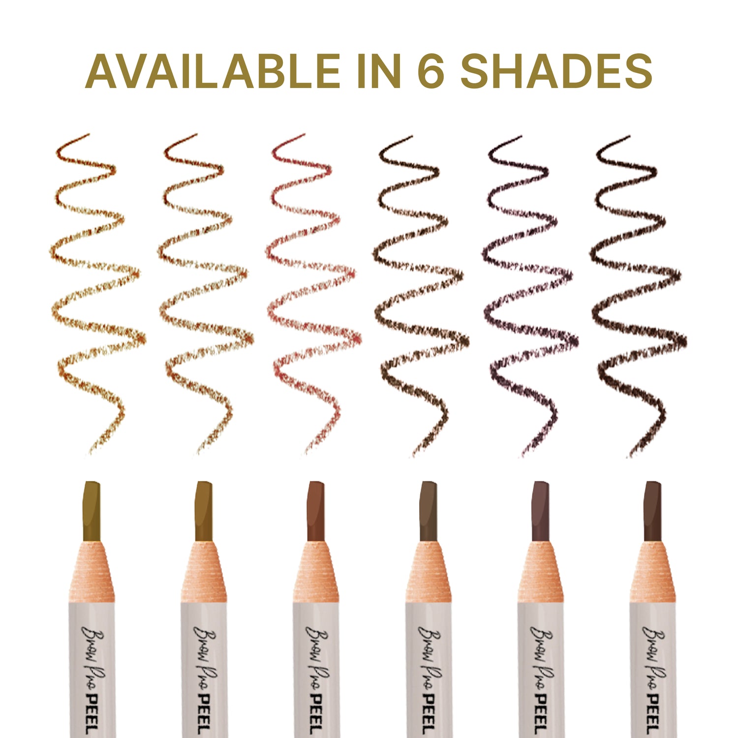 6 Pack Brow Pro Peel Off Pencils with Sharpener - Waterproof Mapping Pencils - Light Medium Dark Brown