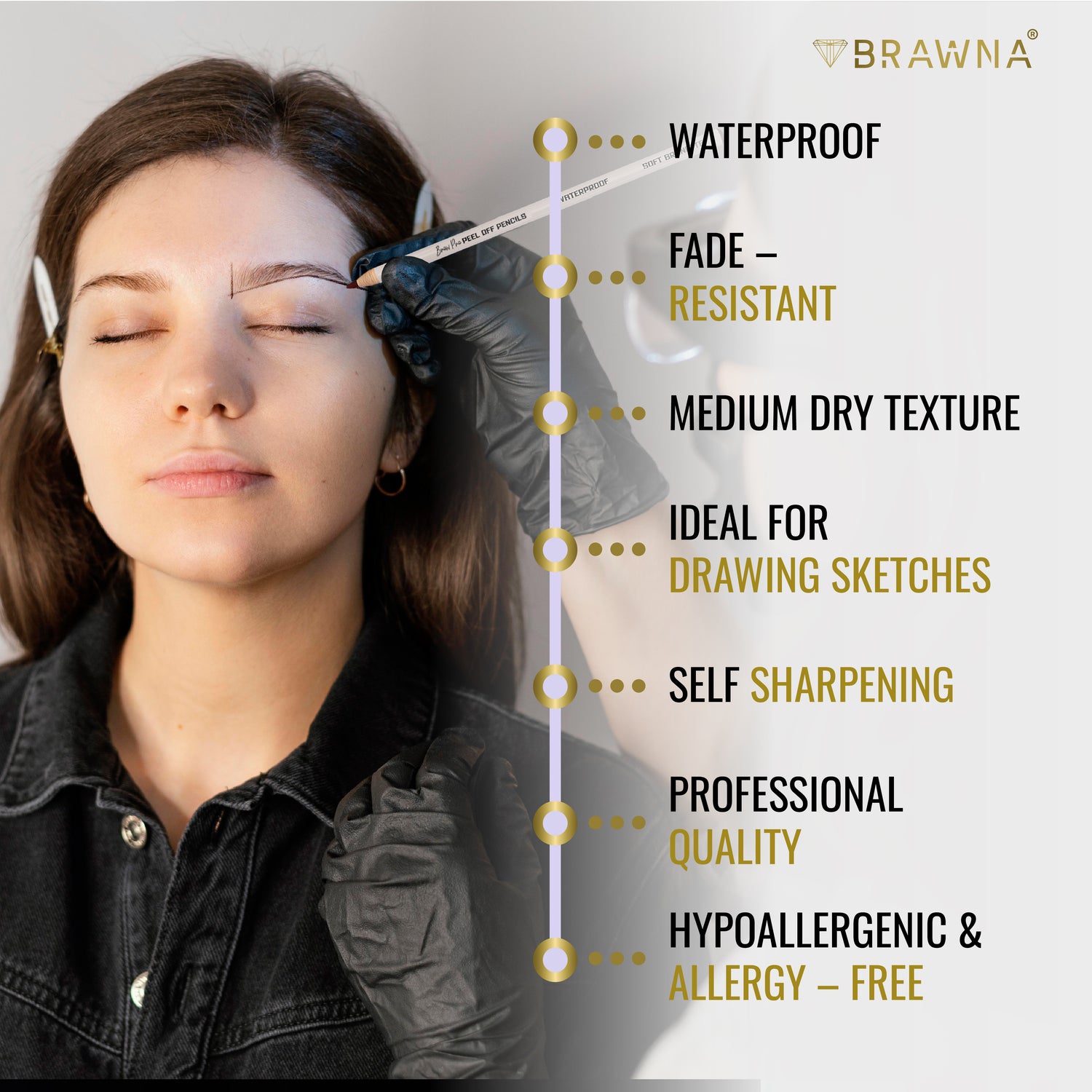 Achieve perfectly sculpted eyebrows with BRAWNA's Brow Pro Peel Off Pencils